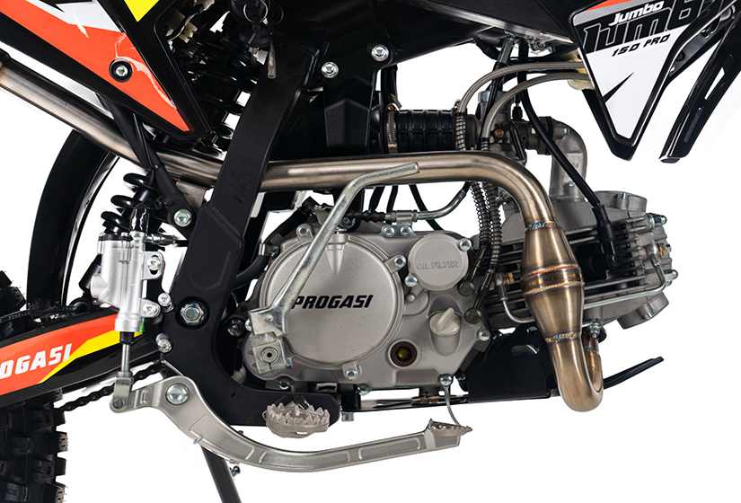 PROGASI Jumbo 150 Pro — бұл қуат пен сенімділіктің тамаша үйлесімі. Жоғары өңдеу деңгейімен және тамаша эргономикасымен сіз жолдағы әрбір сәттен ләззат ала аласыз. Jumbo 150 Pro — өнімділік, сенімділік және жайлылық үйлесімін іздейтіндер үшін тамаша таңдау. Бұл мотоцикл жүргізуден барынша ләззат алу үшін жасалған!