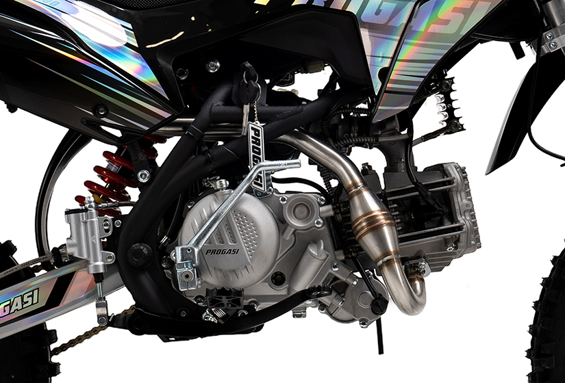 Брендтелген PROGASI алюминий шуыл басқышы толық өлшемді кросс-мотоциклдер сияқты тар пілтесіз тормен жасалған. Megabomb резонаторы қосылды: төменгі қуаттан орташа айналым диапазонына дейін және қозғалтқыштың «балқыған» дыбысы.