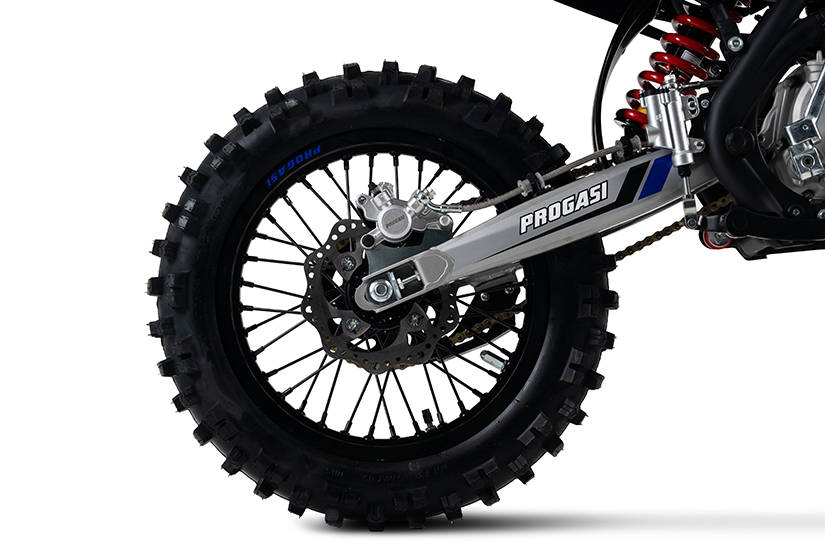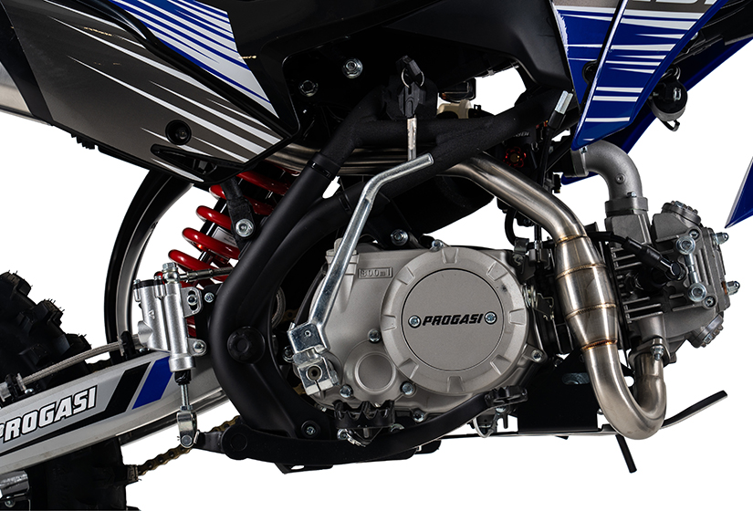Брендтелген PROGASI алюминий шуыл басқышы толық өлшемді кросс-мотоциклдер сияқты тар пілтесіз тормен жасалған. Megabomb резонаторы қосылды: төменгі қуаттан орташа айналым диапазонына дейін және қозғалтқыштың «балқыған» дыбысы.