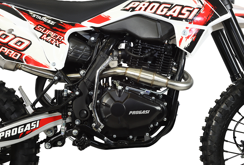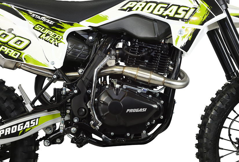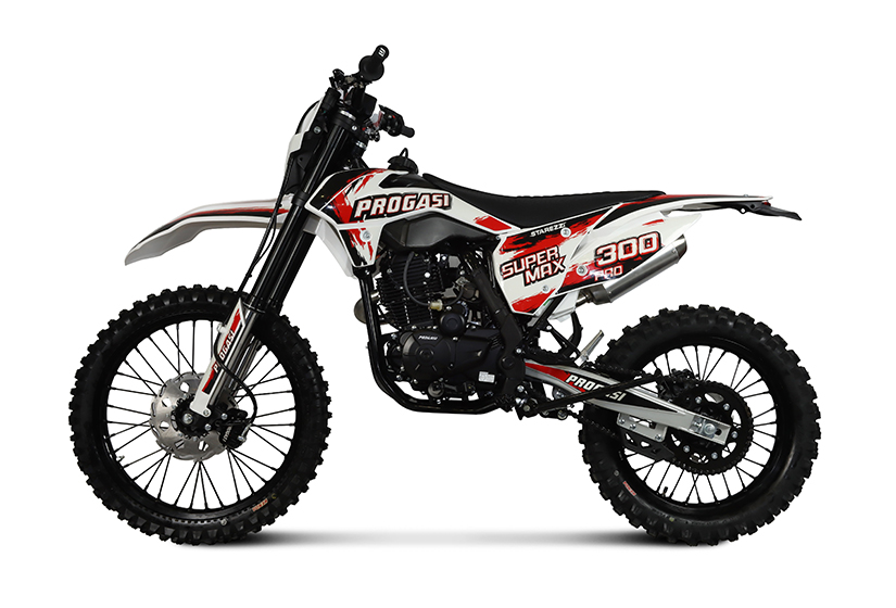 Мыңдаған райдердің жүрегін жаулаған мотоцикл жаңартылған келбетімен қайта оралды! Біз ең танымал моделіміздің рестайлингін ұсынамыз — бұрынғыдан да көп эмоция, жылдамдық пен адреналин. PROGASI Super Max 300 PRO NG қиыршық және қиын жер бедерінде серпінді әрі сенімді жүруге арналған, мұнда қуат, басқару және сенімділік шешуші рөл атқарады. PROGASI Super Max 300 PRO NG — тәжірибесі бар бастаушыларға да, кәсіби райдерлерге де лайықты таңдау. Теңгергіш білігі бар, ауамен салқындатылатын, 5 сатылы беріліс қорабы бар қуатты әрі сенімді Zongshen PR300 қозғалтқышы Nibbi Racing Black PE30 спорттық карбюраторы және PROGASI Exhaust System шығару жүйесімен үйлесіп, мінсіз сипаттамалар теңгерімін қалыптастырады және 27 а.к. қуат береді.
